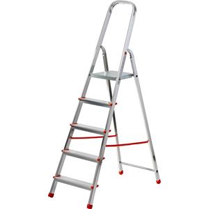 GIERRE Scala in Alluminio Scalamia 5 Gradini - Altezza Massima 3,02 m, Capacità 150 kg, Piedini Antiscivolo