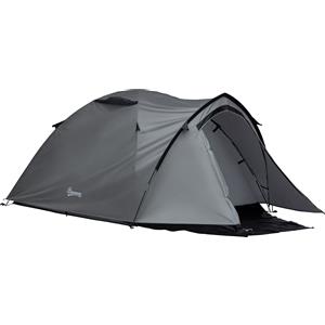 Outsunny Tenda da Campeggio Impermeabile 2 Posti con Vestibolo e Finestre - 325x183x130cm Grigio