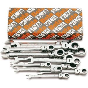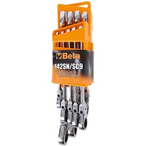 Beta 142SN/SC9 Set di 9 Chiavi Combinate a Cricchetto Snodate con Supporto Compatto - Misure 8-19 mm, Utensili Professionali in Acciaio Selezionato