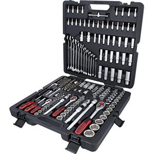 KS Tools 917.0216 Set di Chiavi a Bussola 1/4'' 3/8'' 1/2'', 216 Pezzi, Cromo-Vanadio, Finitura Cromata Opaca, Valigetta Inclusa