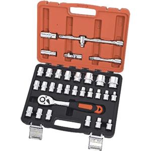 echoENG Set di chiavi con bussole 1/2 - 32 pezzi, valigetta professionale con chiavi a cricchetto, prolunghe e snodo cardanico