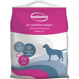 Inodorina Tappetini Igienici Super Assorbenti 60x90 cm - 40 pz con Polimeri Odor Control e Sticker Antiscivolo