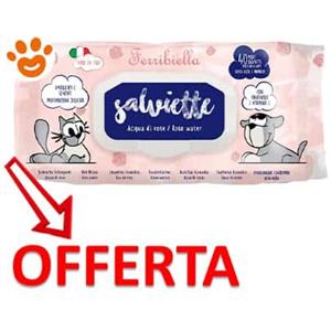 Ferribiella Salviette Detergenti Acqua di Rose 40pz - Igiene Quotidiana per Cani e Gatti, Senza Alcol e Parabeni
