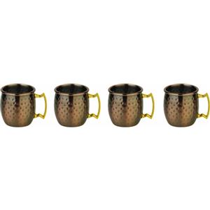 PADERNO WORLD CUISINE Set di 4 Mini Tazze Moscow Mule in Acciaio Inox Anticato da 60 ml con Manico Dorato