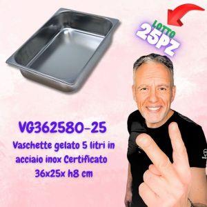 HOUSE Vaschetta Gelato in Acciaio Inox AISI 304 - Capacità 5,4 Litri - Dimensioni 360x250x80 mm