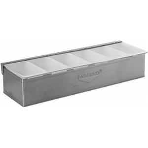 PADERNO WORLD CUISINE Portacondimenti 6 Scomparti in ABS con Coperchio Trasparente, Lavabile in Lavastoviglie, Dimensioni 49x15x9 cm