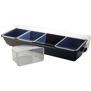 The Bars Portacondimenti 4 Vaschette in Polipropilene Nero, 48x16x18 cm - Ideale per Spezie e Condimenti