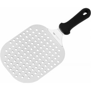 Paderno Paletta Pizza Ovale Forata in Acciaio Inox - Manico Corto in Plastica Resistente