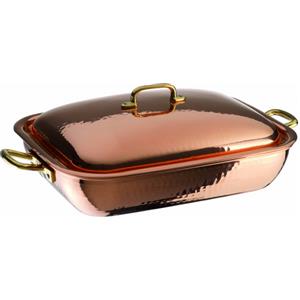 PADERNO Tegame Rettangolare in Rame Lucente con Coperchio - 36 x 28 cm, Capacità 11 L