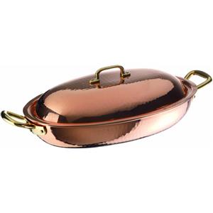 Paderno Tegame Ovale in Rame Lucente con Coperchio - 38x26 cm, Capacità 11 L
