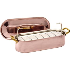 Pentole Agnelli - Pesciera in Rame Liscio Stagnato con Coperchio, Griglia e Maniglie in Ottone - 40x13 cm