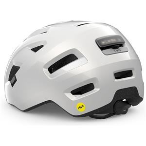 MET Casco E-Mob MIPS Bianco Lucido - Sicuro, Ventilato, Con Luce USB LED Integrata