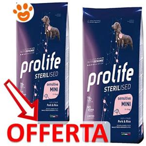 Prolife Dog Sterilised Sensitive Adult Mini Maiale e Riso - Offerta [PREZZO A CONFEZIONE] Quantità Minima 2, Sacco Da 7 Kg