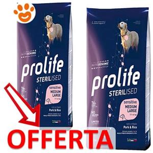 Prolife Dog Sterilised Sensitive Adult Medium Large Maiale e Riso - Offerta [PREZZO A CONFEZIONE] Quantità Minima 2, Sacco Da 12 Kg