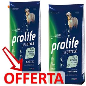 PROLIFE DOG LIFESTYLE LIGHT CODFISH&RICE MEDIUM/LARGE 12 KG*Acquisto minimo 2 SACCHI*