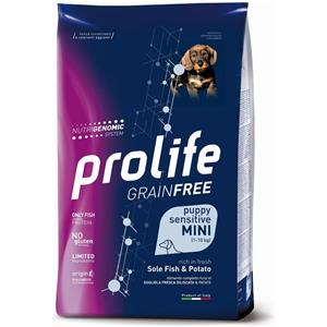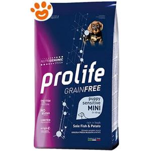 Prolife Grain Free Cane Puppy Sensitive Mini Sogliola e Patate 7 kg - Crocchette monoproteiche cane - 1° ORDINE? fino al 20% di sconto