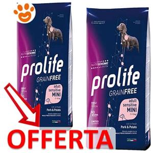 Prolife Grain Free Adult Sensitive Mini 1-10 kg con Maiale e Patata per Cani da 2 kg in Alimenti Cani e Gatti