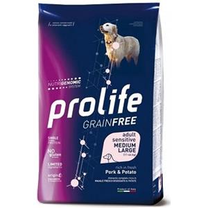 Prolife grain free adult sensitive med/lar maiale e patate 2,5kg