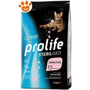 Prolife Cat Sterilised Sensitive Adult Maiale e Riso - Offerta [PREZZO A CONFEZIONE] Quantità Minima 2, Sacco Da 7 Kg