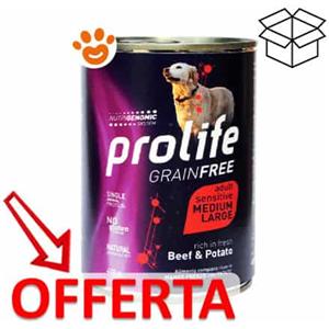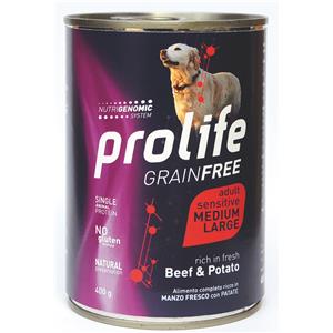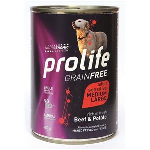 Prolife Dog Grainfree Adult Medium Large Manzo e Patate - Lattina Da 400 Gr - CONFEZIONE RISPARMIO