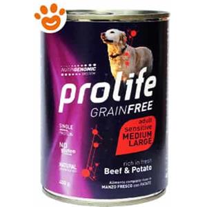 Prolife Dog Grainfree Adult Medium Large Manzo e Patate - Lattina Da 400 Gr