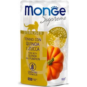 Monge Supreme Sterilised - Cibo Umido per Gatti Adulto con Tonno, Quinoa e Zucca - Bustina da 80g