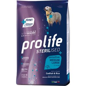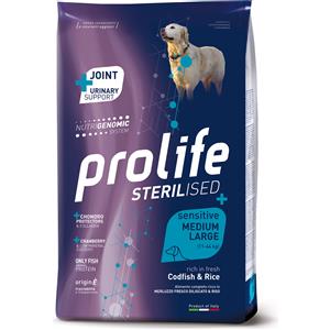 Prolife Crocchette Sterilised Sensitive con Merluzzo e Riso per Cani Adulti Taglia Medio/Grande - 2,5 Kg