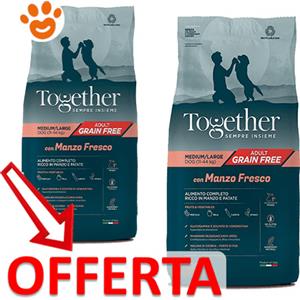 TOGETHER Crochette per Cani Adult Grain Free MEDIUM LARGE Manzo e Patate Multiproteico 12 kg Prezzo x 2 unità