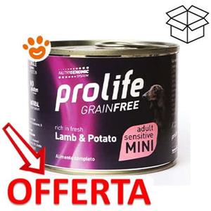 Prolife Cibo Umido Grain Free per Cani Adulti Mini con Agnello Fresco e Patate - Lattina da 200g