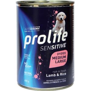 Prolife Cibo Umido per Cuccioli Sensitive Agnello Fresco e Riso - Lattina 400g per Taglia Media/Grande