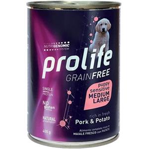 Prolife Grain Free Puppy - Alimento Umido Completo per Cuccioli Sensibili con Maiale Fresco e Patate, 400g