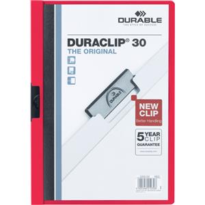 Durable DURACLIP® Cartellina A4 con Clip in Acciaio, Capacità 30 Fogli, Dorso 3 mm, Copertina Trasparente, Retro Colorato