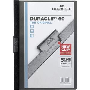 Durable DURACLIP® A4 Cartellina con Clip - Capacità 60 Fogli, Dorso 6 mm, PVC Nero e Copertina Trasparente