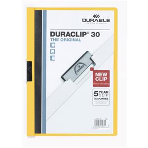Durable DURACLIP® Cartellina A4 Gialla - Capacità 30 Fogli, Dorso 3 mm, PVC Trasparente con Clip in Acciaio
