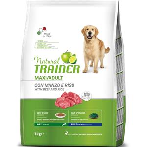 Natural Trainer Maxi Adult con Manzo e Riso - Alimento Secco Completo per Cani Adulti di Taglia Grande - 12 kg