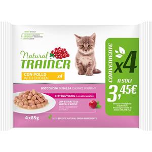 NATURAL TRAINER Trainer Natural Gatto KITTEN & YOUNG Pollo Multi Pack 4 x 85gr Prezzo x 12 unità