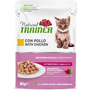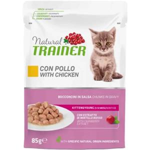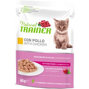 Natural Trainer Cat Kitten e Young con Pollo Bocconcini in Salsa Busta 85 g