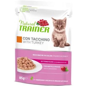 Natural Trainer Cat Kitten e Young con Tacchino Bocconcini in Salsa 85 g