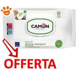 Camon Salviette Detergenti all'Olio di Neem - 20 Pezzi per Cani e Gatti, Pratiche e Profumate