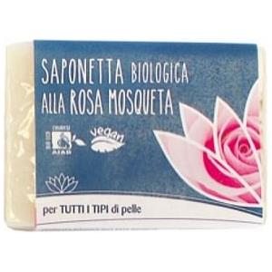 Fior di Loto Saponetta Bio alla Rosa Mosqueta - 100 g, adatta a tutti i tipi di pelle, con glicerina e olio di cocco