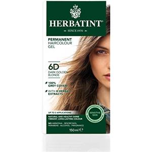 Herbatint Gel Colorante Permanente 6D Biondo Scuro Dorato - 150 ml, senza Ammoniaca, 100% Copertura Capelli Bianchi, per Pelli Sensibili, con 8 Estratti Naturali Bio