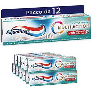 Aquafresh Dentifricio Multi Action, Protezione Carie, Gengive Sane, Alito Fresco, Smalto Forte, Contro Placca e Macchie, Extra Fresh Pacco da 12x75ml