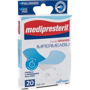 CORMAN Cerotto Medipresteril Impermeabile 7x3 cm - 20 Pezzi, Dispositivo Medico CE, Monouso, Garza Antisettica