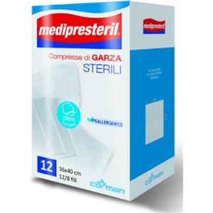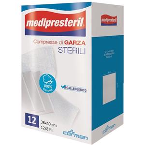 CORMAN SPA GARZA COMPRESSA MEDIPRESTERIL 12/8 FU 36X40CM 12 PEZZI