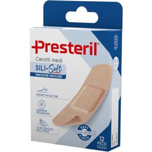 CORMAN Cerotti Presteril Sili-Soft 7,2x2 cm - 12 Pezzi, Adesivo Ipoallergenico per Pelli Sensibili