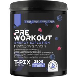 T-Rex Integratori Pre Workout - Polvere Energizzante senza Caffeina con Creatina, BCAA, Arginina e Vitamine - 250 g Frutti di Bosco