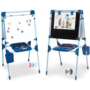 Bing Lavagna Magnetica Double Face 48426 con Cavalletto - 100x35x40 cm, Lato Bianco per Pennarelli e Lato Nero per Gessetti in Giochi educativi e costruzioni
