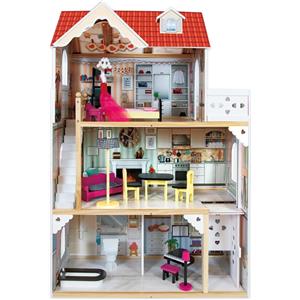 Teorema Casa per Bambole in Legno - 3 Livelli, 5 Stanze, Decorazioni e Arredo Inclusi