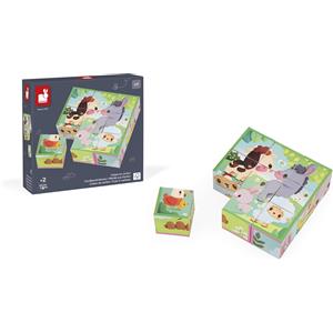 Janod Fattoria - Set di 9 Cubi in Cartone per Bambini dai 2 Anni con Animali e Puzzle