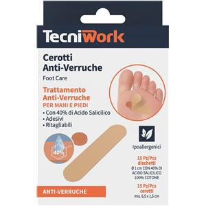 TECNIWORK Cerotti Anti Verruche Piedi - 15 15 Pezzi con Acido Salicilico al 40%, Resistenti all'Acqua e Facili da Applicare